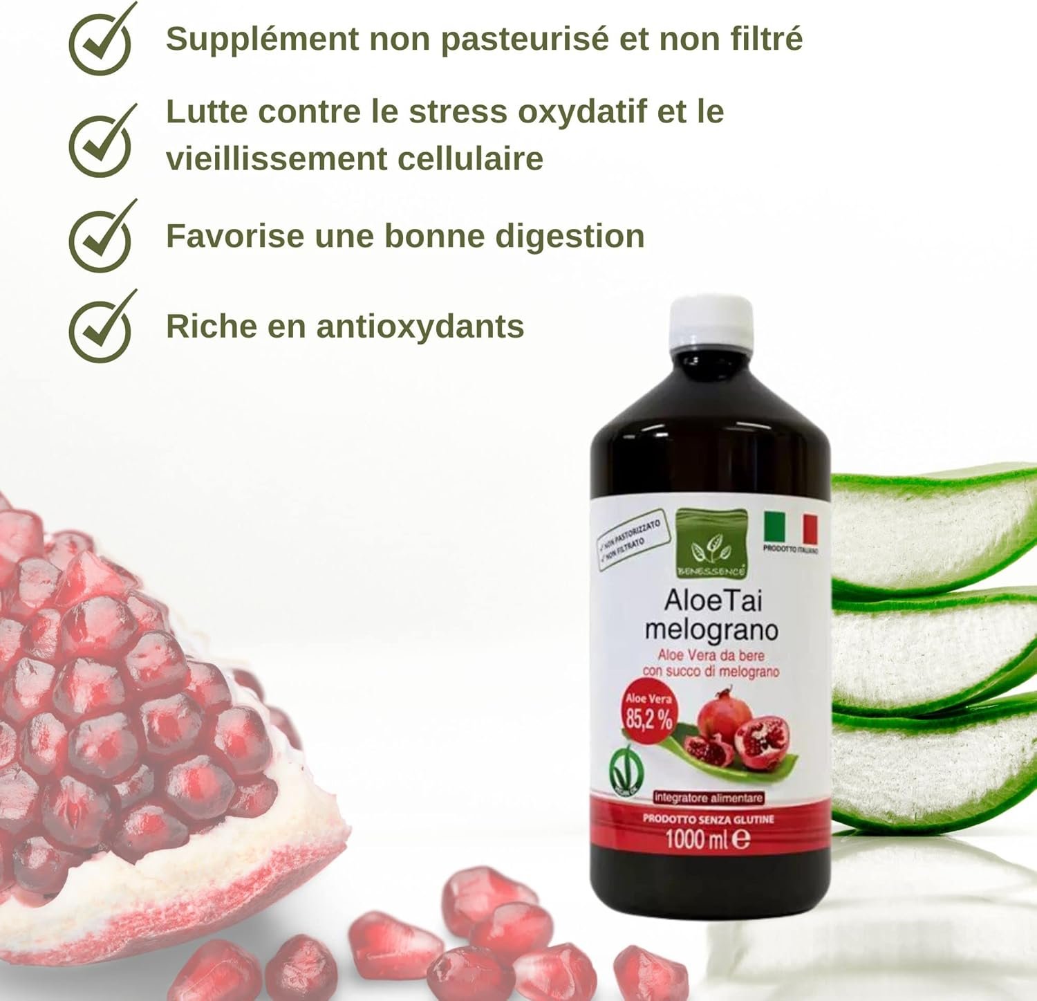 Benessence – Jus d’Aloe Vera au jus de Grenade 1000 ml – Made in Italy