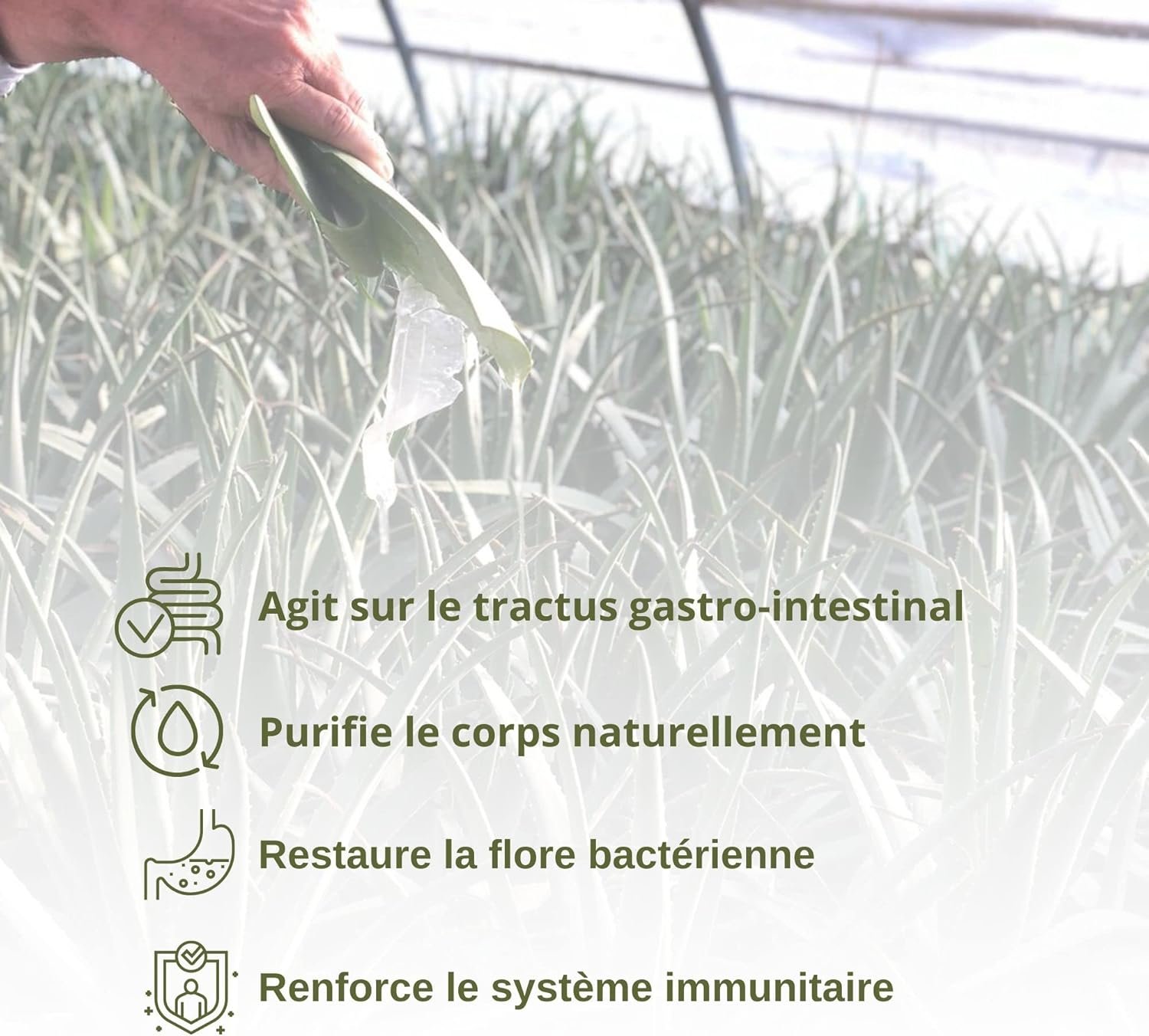 ENCOURAGE UNE DIGESTION SAINE: Meilleur allié du bien-être, l’Aloe Vera aide la flore bactérienne intestinale et le flux gastrique en favorisant la digestion, naturellement et sans recourir à des enzymes ou des probiotiques, offrant un soulagement de la libération occasionnelle de gaz causée par l’indigestion et gonflement.